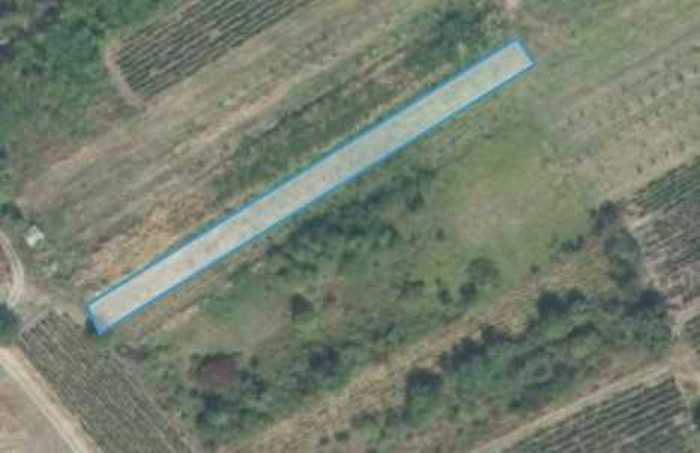 There is a 3306 sq.m plot of land located in the Gurjaani district. It has an entrance from three sides. There is an old building that can be renovated. There are up to 100 apple trees, and up to 25 apricot trees planted. The plot of land is free on the roadside.