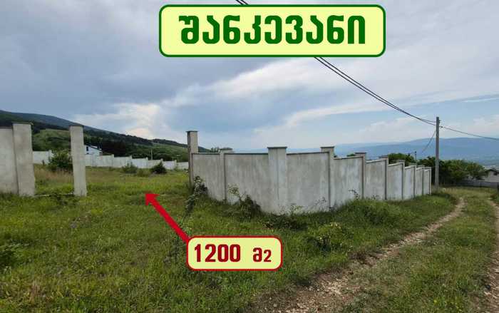 For sale, above Saguramo, in the best location of Shankevani, a 1200 sq.m. land plot with a capital concrete fence, an approved project for a house, and a construction permit issued. Ideal views. Close to the forest. It is the best place for both living and vacationing.