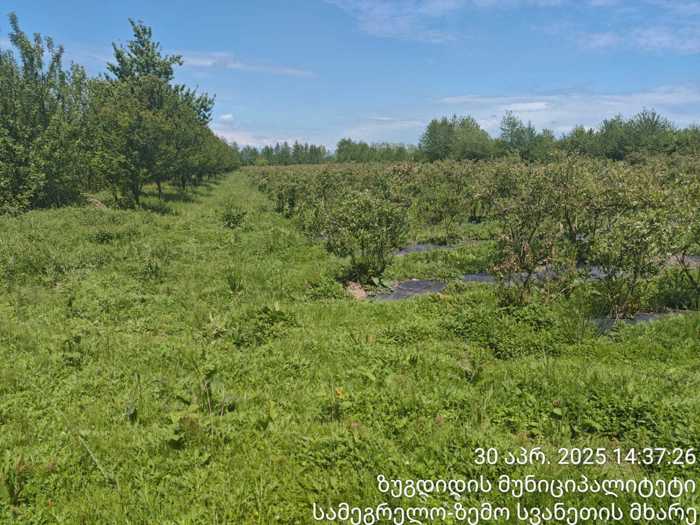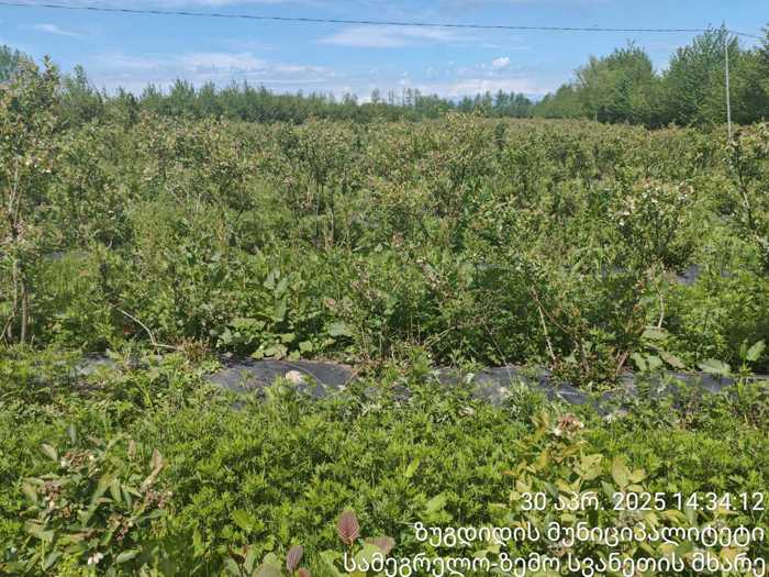 For sale is a 49,029 sq.m agricultural land plot in Zugdidi, village Orulu. The plot has been newly planted with fully fruit-bearing blueberries. There is also one auxiliary wooden building on the land plot. The plot is fenced and located near a drivable road. S/C 43.27.41.094