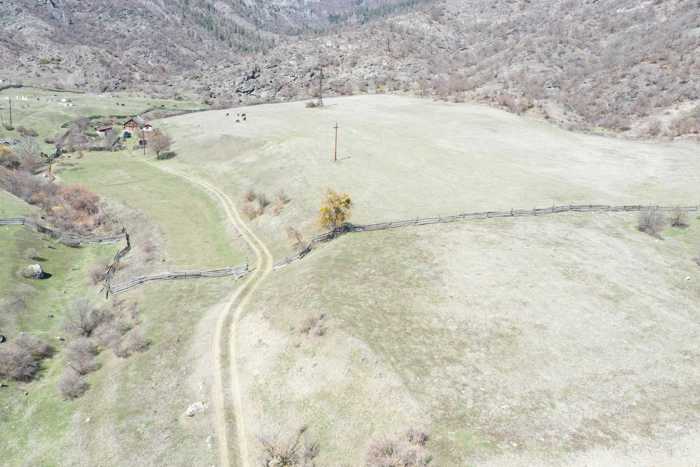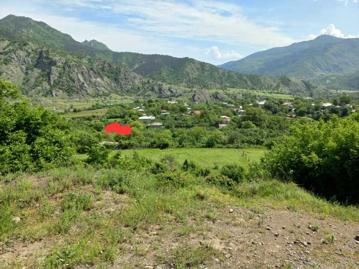 The land plot is fenced, it has a farm building and a small house (storage room, utility room, bedroom with four). The plot is located 100 meters from the highway of Khashuri to Akhaltsikhe.