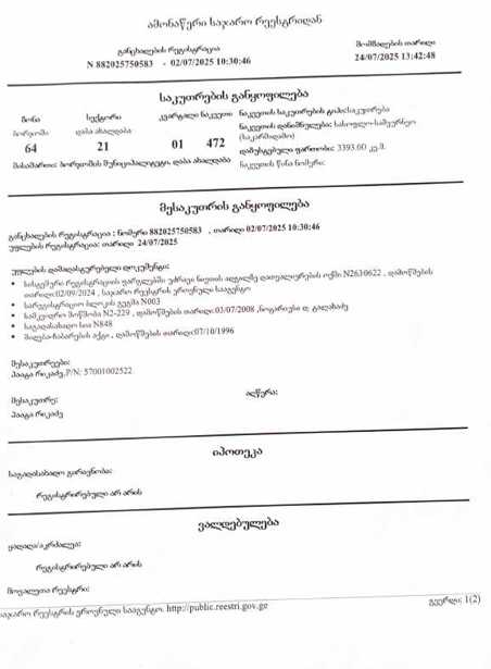 For sale is a 5,000 sq.m. non-agricultural land plot in the protected area of Nezvi, Akhaldab, Borjomi. There is a 9,000 ha reserve of Caucasian fir around it. Across the land plot, there is a dirt road and the mountain river Nezvi, with a forest behind. It is ideal for investment, for building cottages, setting up a fish farm, and more. The price per square meter is $25. If interested, call 579207818.