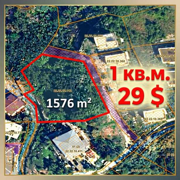 The land is up to 6000 sq m, of which 2500 sq m is registered, the rest can be arranged without any problems, there is an old house in quite solid condition on the land, fruit trees are planted on the land, there is also a view of the sea, and a small river flows nearby, utilities are connected to the land.