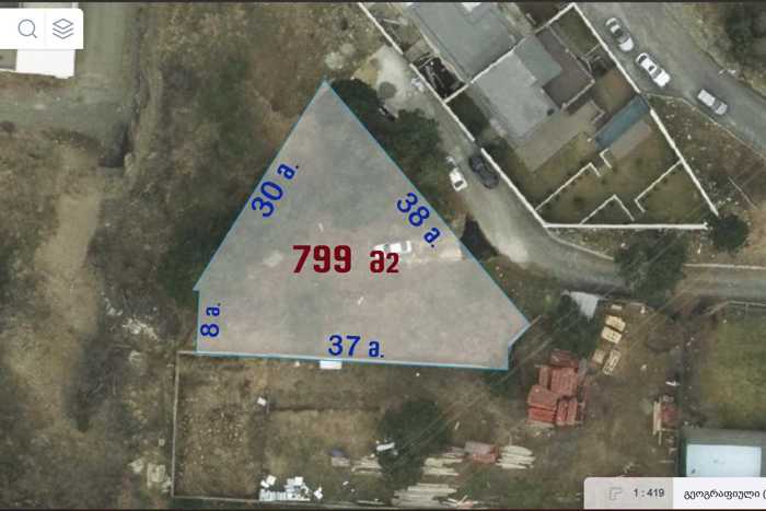 For sale in Tsqneti a 799 sq.m. plot of land in the best location with non-agricultural status, an approved project and a building permit issued. Stunning views, in a very good location, at the end of the walnut trees at the beginning of Tsqneti. The plot is located in residential zone 1. The technical specifications of the house according to the project are: total area - 339 m2. This includes: living area - 192 m2; summer area - 86 m2.