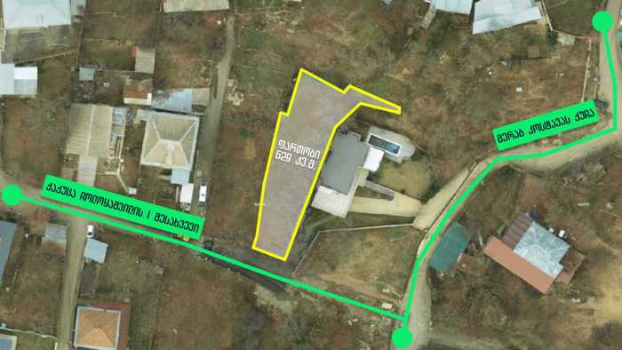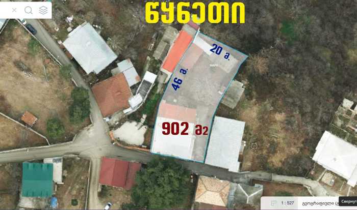 A land plot is for sale in the town of Tsqneti, in a central/elite location near the hotel "Kopala." The plot contains a two-story old house (143.03 sq. m). The total area of the land plot is 1025 sq. m. Price: $665,000