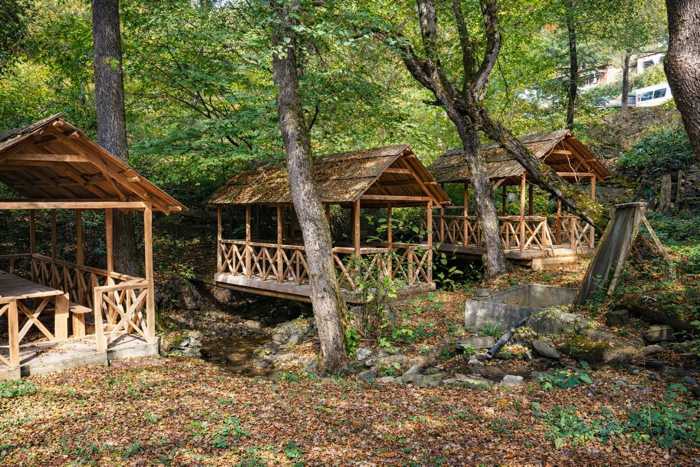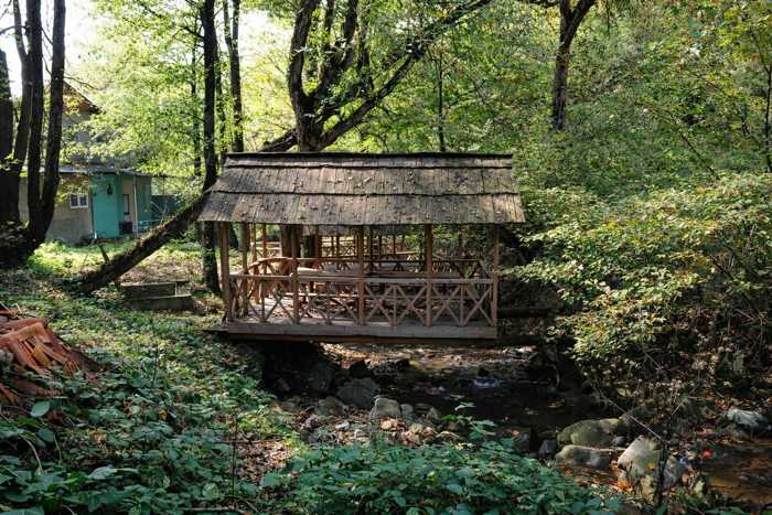 St. In the best place in Borjomi at the foot of the mountain. On the border of pine and spruce. There are no trees in the area.