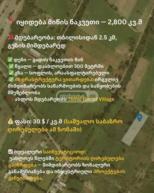 For sale is a 5000 sq.m commercial land plot located near the new Samgori and Rustavi roads. It is ideal for an auto service, auto boxes, and a park for dismantled auto parts. The area is equipped with all communications, construction of a concrete road is underway, and it is easily accessible for light and heavy vehicles. Additionally, we can also prepare a project and construct boxes with completed infrastructure. A unique opportunity for your business.