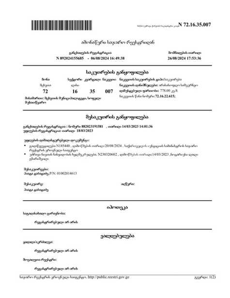 Land for sale in Lisi – Block 51 Land for sale in the prestigious and rapidly developing area of Lisi, Block 51. The plot is conveniently located in a promising area, ideal for both residential development and investment. 📐 Total area: 3,000 sq.m. 📏 Consists of two plots – 1,500 sq.m. + 1,500 sq.m. 🔹 Separate plots available. ⚡ Utilities (electricity, water, and road) are available. 🏗️ Convenient topography and regular shape. 🌿 Quiet environment and good neighborhood. 📌 Cadastral codes: • 72.16.18.879 • 01.72.58.051.007 💰 Price: 1 sq.m. – $255.00 The plot is located close to the city, yet surrounded by fresh air and nature. 📞 If you are interested, please contact me for more information.