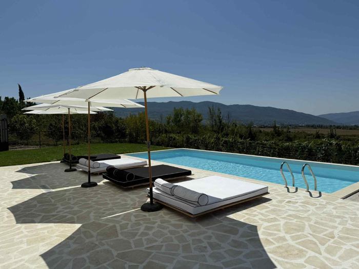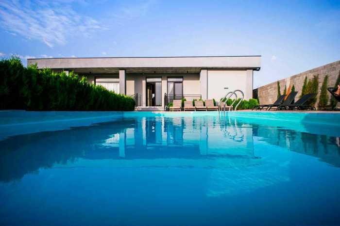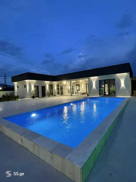 House for rent with a pool! The thermal pool heats up, 500 GEL for up to 10 guests. The maximum number of guests is 40, the price varies based on the number of guests and the days of the week. The house is 200 sq.m, furnished with 3 bedrooms and equipped with appliances. The yard is 2400 sq.m with a 40 sq.m covered pergola, the pool heats up to 8/4. I am the owner.