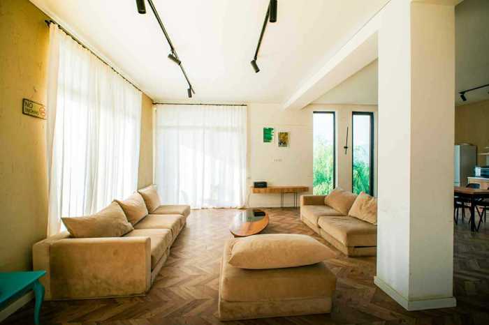 A cottage is available for rent in the center of Saguramo (turn near Nikora's store) where you will find all necessary inventory: speakers, plates, a grill, skewers, etc. There is a separate space designated for events (entertaining room of 45 sq.m). Please contact us at the provided number for details. I can also share videos with you on WhatsApp.