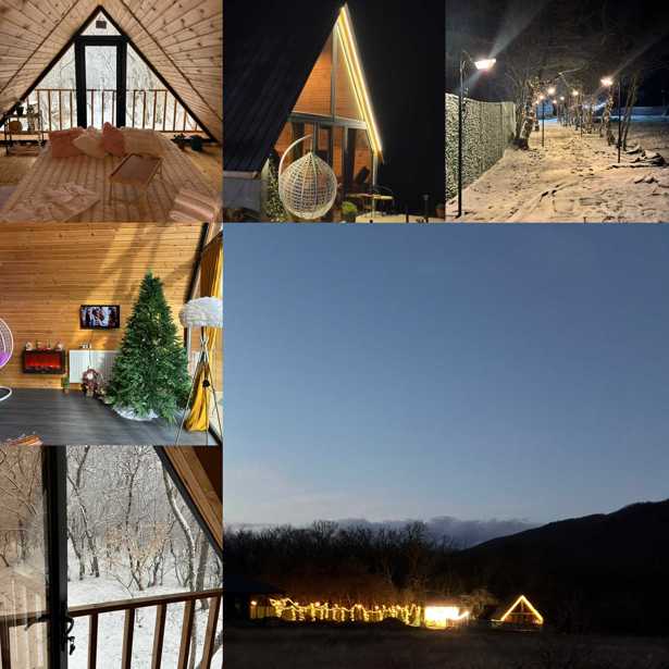 The cost of the cottage is 700 ₾, the cost is defined for 20 people, it includes a table and chairs calculated for 20 people, serving utensils, including cocktail, whiskey, and wine glasses, the kitchen is equipped with full appliances, the space will greet you with a glass-closed terrace and a covered thermal pool. You will find equipment on-site, two powerful Bluetooth speakers and a heart-shaped arch that you can decorate according to your wishes 💛 Entry time is 15:00, exit time is 12:00 the next morning. It's exactly a 10-minute drive from Tbilisi Mall, you will turn at the traffic sign of Zedazeni before reaching the turn to Saguramo and it will take you 1 minute to reach the house 🤝
