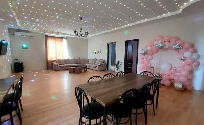 For rent a house daily for parties. House area 460 m2, yard area 1200 m2. The house consists of: 3 floors, 3 bedrooms, 3 bathrooms, closed veranda, open veranda. Equipped with: dance floor with lasers (0th floor), professional speaker, fireplace. Sound limit in the indoor area (on the 0th floor) is not restricted. For reservations, call Giorgi.
