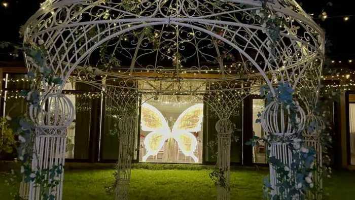 A house is for rent for a party. In the space, you will find: 3 air-conditioned halls (an underground hall with speakers, lasers, and a disco ball) with inventory. Tables, chairs, dishes. Fully equipped kitchen, yard with barbecue area. 2 restrooms, 3 bedrooms, and 1 lounge room. The house is fully equipped with all necessary inventory 1200 sq. m yard with a swimming pool and jacuzzi. The price depends on the number of guests. We have both buffet and Georgian table service, as well as design (for birthdays, weddings, and other events).