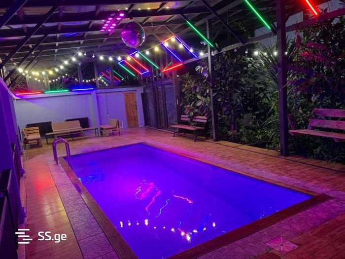 For rent daily, a private house near the entrance of Tbilisi, with a new renovation, a covered pool (35 degrees), lighting and speakers, 4 bedrooms, furnished, with appliances and central heating, for parties... Tel: 597065494