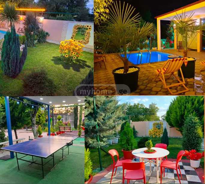 Starting from 600 Lari (the price depends on the number of people) A cottage is for rent between Tbilisi and Rustavi, in the village of Poladaantkari, 15 kilometers from Samgori metro station. On a 1500 sq m yard, there is a house and a banquet hall (with all kinds of dishes and equipment for up to 40 people), a pool, a football and basketball court, table tennis, a swing, and a children's entertainment area. The yard is lit at night. We consider long-term rentals.