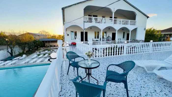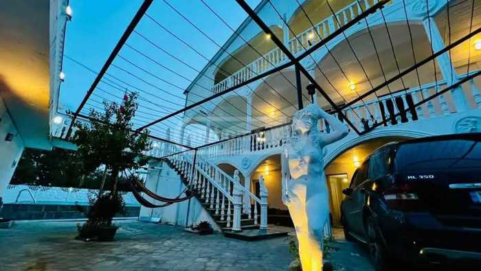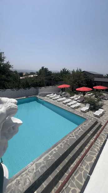 Large living room, two bedrooms, kitchen and bathroom separately. Refrigerator, Wi-Fi, large speaker, hot water, central heating. There is a large yard area of 1300 sq.m., a comfortable and tidy environment, there is a grill, table, and chairs in several locations where it is possible to host buffets, parties, and other similar events. The price is 300 lari.