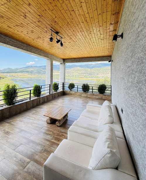 A three-bedroom furnished house is for rent by the lake in Gldani, with a large veranda and yard. The price depends on the number of guests.