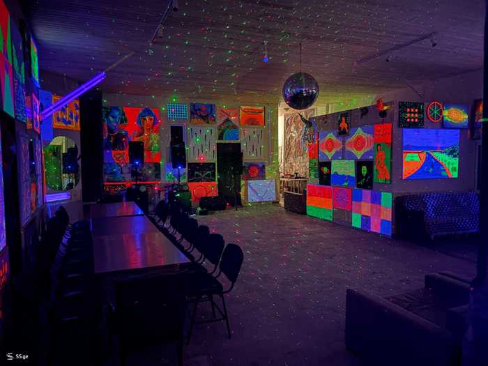 For rent! In the Temka area… For parties, events, and birthdays. The house is decorated with avant-garde paintings, quality music and colorful lighting blend with the paintings to give you maximum pleasure during dancing. There are open and closed spaces. It has a kitchen, bedroom, yard, and a bathroom… It has parking space. Check-in time: From 1 PM to 10 AM the next morning.. The price is determined by the number of people, price negotiations are also considered. We promise you quality unforgettable entertainment. P.S. Additional photos or video materials are available on WhatsApp or Viber. Reservation in advance is required. 150 GEL.