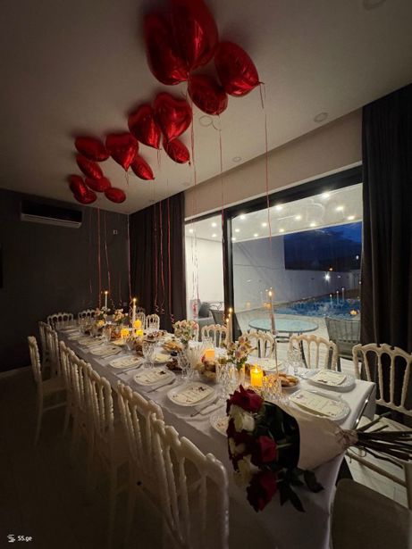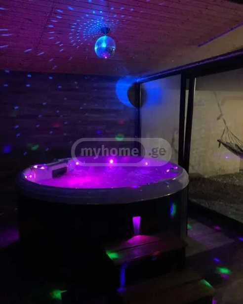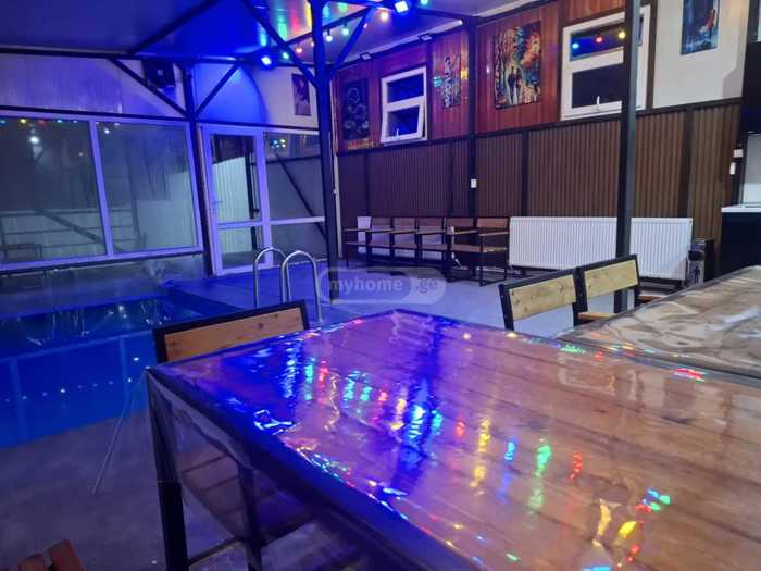 The house is located at the entrance to Tbilisi from the Mtskheta side, at the beginning of Agmashenebeli Alley, in Mukhatgverdi Cottages. We have no restrictions on music, you can use the 1000-watt Beringer speaker all night long. It is forbidden to bring additional speakers. The house has 3 bedrooms, a living room, a kitchen, an indoor pool that is heated to 38 degrees, we have a large dance hall with club lights, tables and chairs for up to 50 people. There is also a large, beautiful, green yard, parking spaces in the yard, a grill and skewers for barbecue and a huge terrace. You can enter from 3 pm, and the exit time is determined by 12 am the next day. The price varies depending on the days of the week and the number of guests. Reservations are accepted in advance. You can preview the house, both through a detailed video and on site.