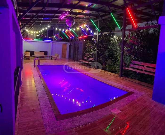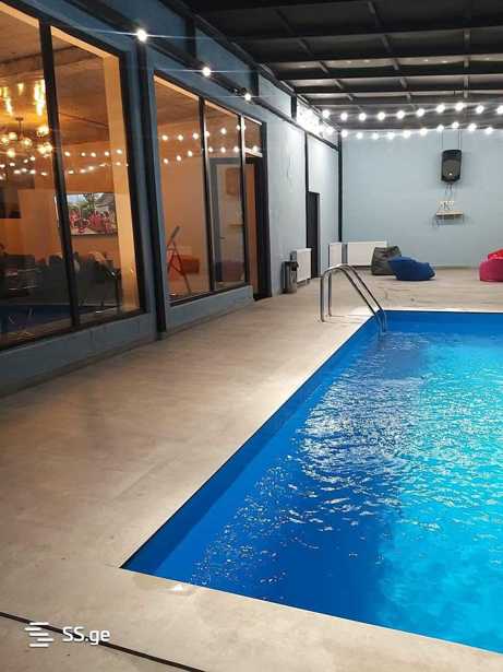 For rent daily a private house near the entrance to Tbilisi, with new renovation, a covered pool (35 degrees), lighting and sound system, 4 bedrooms, furnished, with central heating, for parties, it is important that we do not have noise restrictions!