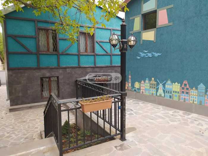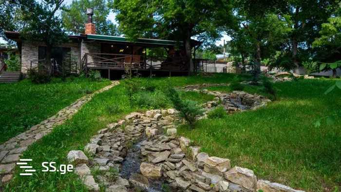 A comfortable villa is for rent in Kojori, with beautiful views, a porch surrounded by greenery, a basketball court, 8 bedrooms, 2 large living rooms, fully equipped. The villa is located 50 meters from the central well-maintained park.