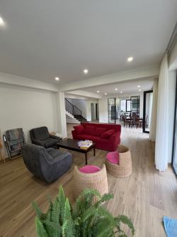 For rent: a 7-room private house located 2 minutes from the center of Sagarejo in a cozy, ecological area. An ideal family house in the peaceful and beautiful surroundings of Sagarejo, only 20 minutes drive from Tbilisi. Located in an ecologically clean area, the house offers a modern, refined interior and an unparalleled combination of comfort. The main features of the house: Space: a total of 7 rooms, including 5 bedrooms with their own bathrooms. Fully equipped separate kitchen. Comfortable living area: a cozy and warm environment with a fireplace. House area: distributed on 2 floors, total living space of 200 sq.m. Mezzanine: an additional 100 sq.m of unused space. Garage: 25 sq.m with an automatic door for secure parking and storage. Yard: 1000 sq.m beautifully landscaped yard with an automatic irrigation system. Pool: a large swimming pool with heating, filtration, lighting, etc. Veranda locations: in the center of Sagarejo, close to supermarkets, pharmacies, a Finnish school, and other services. Only a 20-minute drive to Tbilisi. On a quiet and tranquil street, ideal for family living. Rental details: Price: $2,300 per month. Minimum term: 1 year. Two months advance payment.