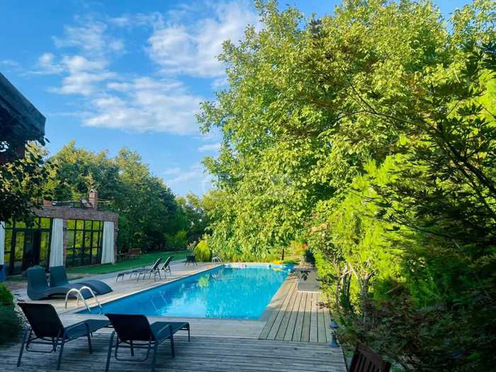 For rent or sale a house in Sagarejo (Mtskheta) we are the owners 15 km from Tbilisi, near the house-museum of Ilia Chavchavadze, with a swimming pool, sauna structure, technical building, 4 isolated bedrooms, an attic, a half-basement, 4 bathrooms, a beautiful garden, an automatic gate, a billiard table, a ping-pong table, central heating.