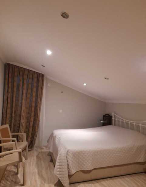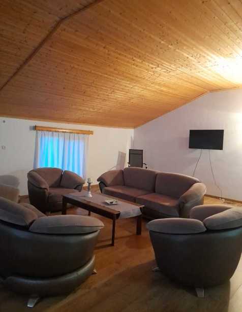 House for rent or sale in Saguramo (Mtskheta). We are the owners, located 15 km from Tbilisi, near the house museum of Ilya Chavchavadze, with a swimming pool, sauna building, utility building, 4 isolated bedrooms, an attic, a half basement, 4 bathrooms, a beautiful garden, automatic gate, billiard table, ping pong table, central heating.