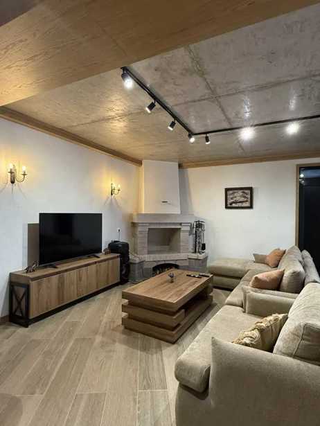 For rent: a newly built, renovated, travertine-finished luxury house in Saguramo, in the best location. (With 360-degree views) with high-quality glazing and energy-efficient windows. Living room 70m²; isolated kitchen 40m²; 4 bedrooms (2 master bedrooms), 4 bathrooms; balcony 46m²; terrace 72m²; with all utilities (water, electricity, generator, central heating, central sewage...) pool 5X10 with heating, filtration. The house is protected by a security service "Orbi". Decorative and fruit garden 1200m²; modern design creates the perfect environment for relaxation and living. The pool and well-maintained yard are particularly noteworthy, ideal for entertainment and relaxation. Price: $3000 per month for a long term; during the season $4000 per month.