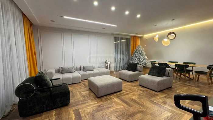 For rent is a newly built, renovated, travertine-clad fashionable house in Saguramo with the best location. (With 360-degree views) Featuring high-quality glazing and energy-efficient windows. Living room 70m/2; isolated kitchen 40m/2; 4 bedrooms (2 master bedrooms), 4 bathrooms; balcony 46m/2; terrace 72m/2; all communications (water, electricity, generator, central heating, central sewage...) heated swimming pool 5X10 with filtration. Surveillance cameras, the house is protected by the security service "Orbi". Decorative and fruit garden 1200m/2; modern design creates an ideal environment for relaxation and living. The pool and well-kept yard are particularly noteworthy, perfect for entertainment and relaxation. Price: $3500 per month for a long term; $4000 per month during the season.