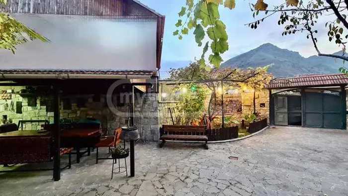 In a beautiful place! A 10-minute drive from Tbilisi, in the direction of the Aragvi River, near the settlement, with views of Mtskheta, the Bebris Tsikhe, and the Cross. Newly built. With constant water, gas, and electricity. Furnished and equipped, with central heating and air conditioning. Each floor has a bathroom-toilet, the first floor has a spacious living area with a veranda and an isolated kitchen, and on the second floor, there are three bedrooms and a balcony. The yard is planted with fruit trees and is fenced with an iron net. A quiet place, close to the access to the Aragvi.