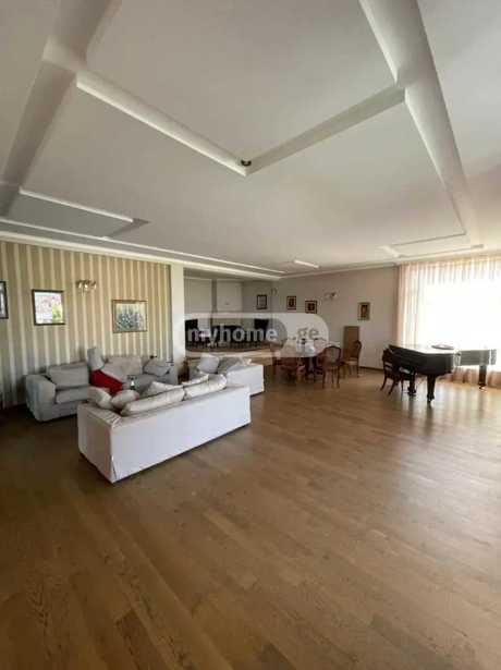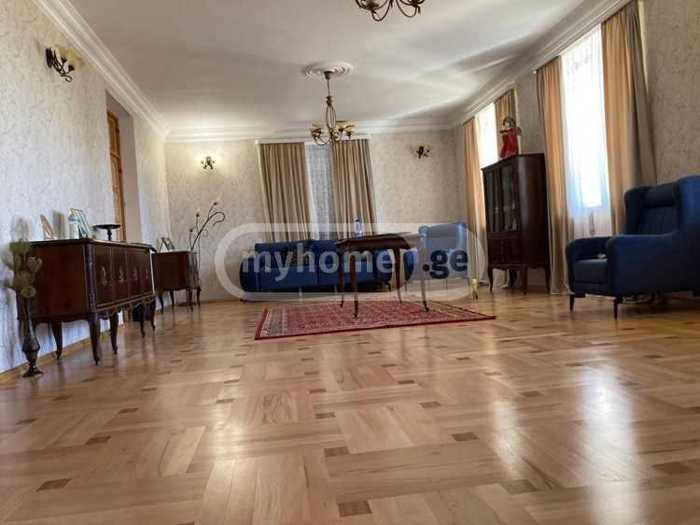 The house is located in the center of Tskhneti, 30 meters from public transport stops, at the foot of a hill, in a cozy place. The house is built in Italian style, with large balconies, shutters, a swimming pool in the yard, and a basketball playing area. On the first floor of the house, there is one bedroom (with its own bathroom), a large living room (with a professional billiard table), a large kitchen, and another bathroom. The second floor has a large balcony, five bedrooms, and two bathrooms. The third floor has a large veranda. In the yard, there are large walnut, lime, maple, and pine trees. Ideal for living, especially for a large family, at the same time, it can also be used for rehabilitation and other similar purposes. Advance payment of the first and last month.