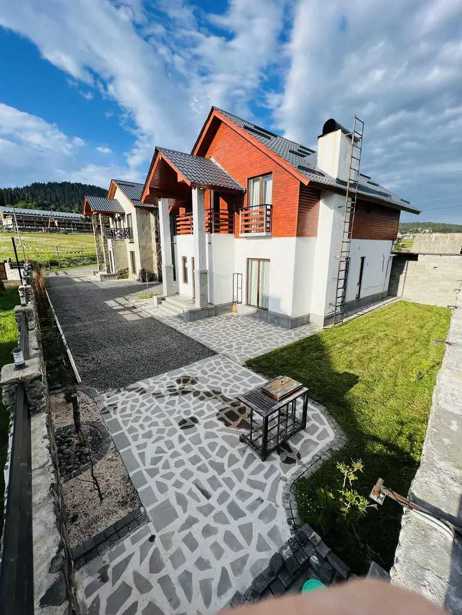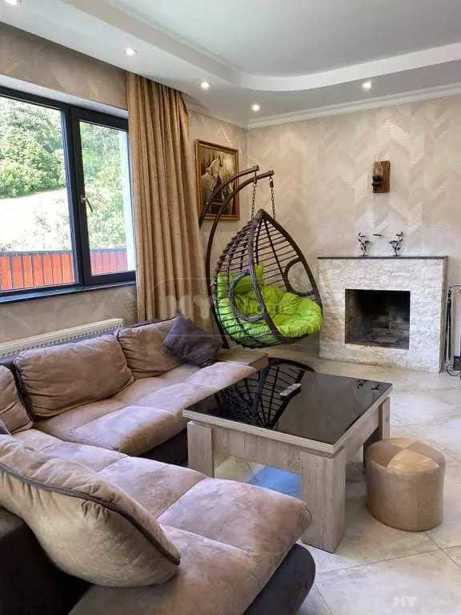 A country house for rent in Bakuriani. On Koba Tsakadze Street, behind the Villa Monte complex, on the edge of the forest, in a cozy and quiet place, a new, well-equipped, clean cottage equipped with modern standards is for rent. The house is designed for 7+2 people, on the first floor there is a large studio-type living room with a fireplace, a bathroom is also located on the first floor, on the second floor there are two bedrooms with necessary linens and towels, individual bathrooms. The kitchen has all the necessary attributes for cooking. The cottage also has "speakers" for your entertainment. The cottage has a well-equipped yard, there are swings and yard furniture in the yard.