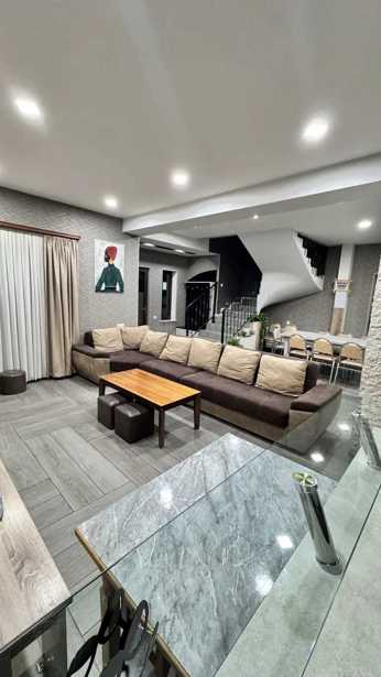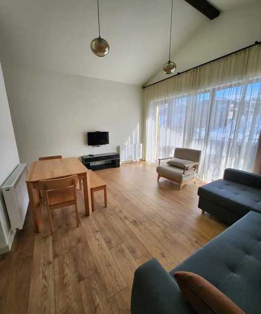 A newly built and renovated two-story cottage is available for rent in Bakuriani, in the best location at the foot of the Kokhta mountain ski lift, just a few meters from the Kokhta ski trail (2 minutes walk to the descent). The house has 2 bedrooms, 1 large living-dining room, fully equipped kitchen, 3 bathrooms, internet, TVs in every room, 2 balconies, and a great view of Kokhta mountain. The final price depends on the season and the number of days.