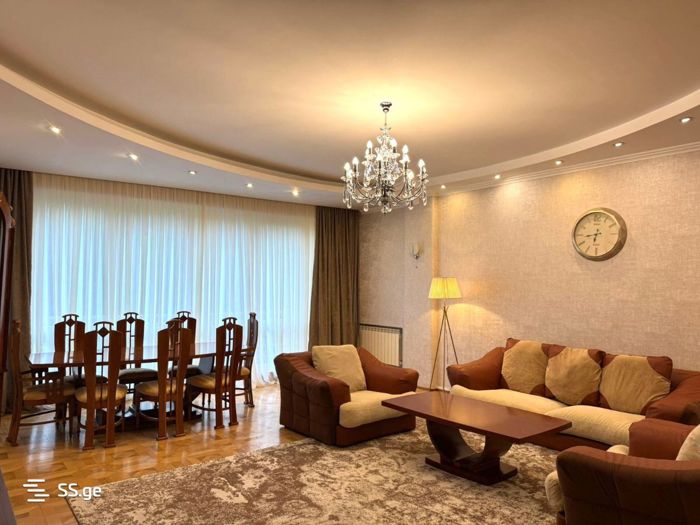 A private house for rent in the diplomatic district, on a quiet, secure and green street, 150 meters from Tbilisi Mall. Total area 520 sq.m. Of which 120 sq.m. is a basement (can be used as a warehouse) and 70 sq.m. are verandas and balconies. The house has 5 bedrooms and 6 bathrooms (5 en-suite). The house has two verandas and 3 balconies. There is a storage room (wardrobe) on every floor. The house is newly renovated, with furniture and appliances. I am the owner Zura (551648018), I do not cooperate with agencies.