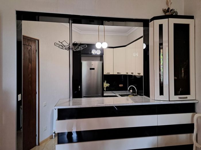For rent: a 7-room private house in the village of Dighomi, 27 Rene Schmerling. The house has 4 bedrooms, one of which is a master bedroom, with an isolated dressing room and bathroom. On the third floor, there is an office and a large veranda. There are sanitary facilities on all floors. The house has central heating, aluminum windows and doors, fully renovated with high-quality materials. The house is fully furnished and equipped with household appliances, including: 2 washing machines, a dryer, a dishwasher, two refrigerators, and all other small household appliances. In the yard, there is 1 auxiliary building with an open gazebo, a toilet, and a storage room. The yard has a pool with full filtration, landscaping, and parking space for a car. The maintenance of the pool and yard, as well as alarm and security control 24/7, is included in the rent. Price - 6000 USD.
