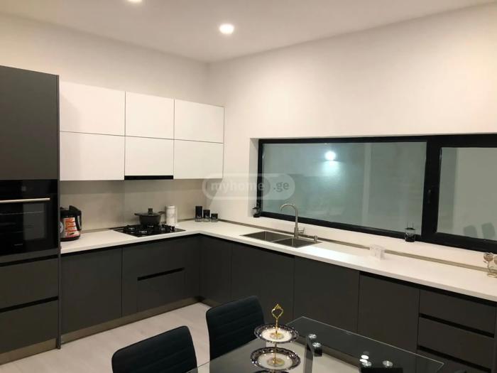 Newly built high-ceilinged (3.3 m) private house of 360 sq.m. for rent. with 4 bedrooms, independent large living room and kitchen, 2 balconies, 3 bathrooms, 40 sq.m. garage, 800 sq.m. With a decorative and fruit tree yard. has 160 sq.m. High ceiling (2.5 m) renovated semi-basement with large windows in a unified space. The first floor can be used for workshops, gym and others. The house is located near the city court behind the Toyota center, there is a city transport from Didube Metro. The house is equipped with modern furniture and appliances. In the yard, it is planned to set up a large frame pool according to the request.