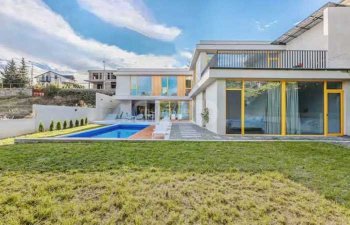 For rent is a vintage-style 3-story villa with 5 bedrooms, 2 kitchens, and 3 bathrooms + 2 additional restrooms. The house is located 700 meters above sea level in Tbilisi, in the village of Shindisi (10 kilometers from Freedom Square). The garden, with its giant trees and birds, offers a view of the city and the beautiful landscapes of the Caucasus. The fireplace creates an inviting atmosphere. In the summer, a 10*4 meter swimming pool operates.On the first floor, there is a large living room with a fireplace, a full bathroom, and a kitchen. The second floor has 5 bedrooms and a bathroom.On the third floor (130 sq.m), there is a hall with panoramic views, which has a kitchen and +2 restrooms. It has a separate entrance. The space is equipped with a projector and a home theater; where training, workshops, and other activities such as yoga, pilates, coaching sessions, and more can be held. The space can also be used as an office. The price is $3600.