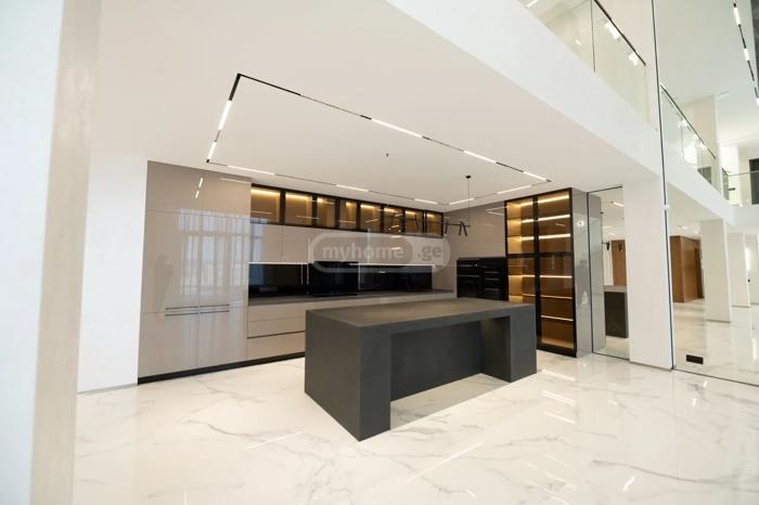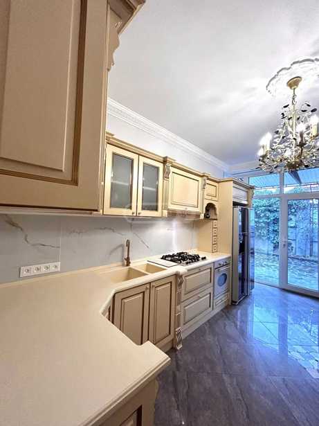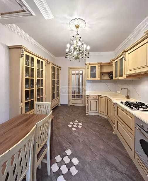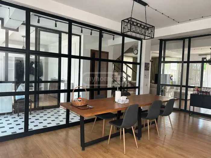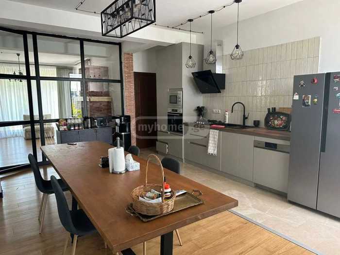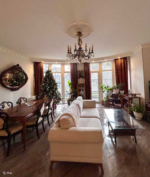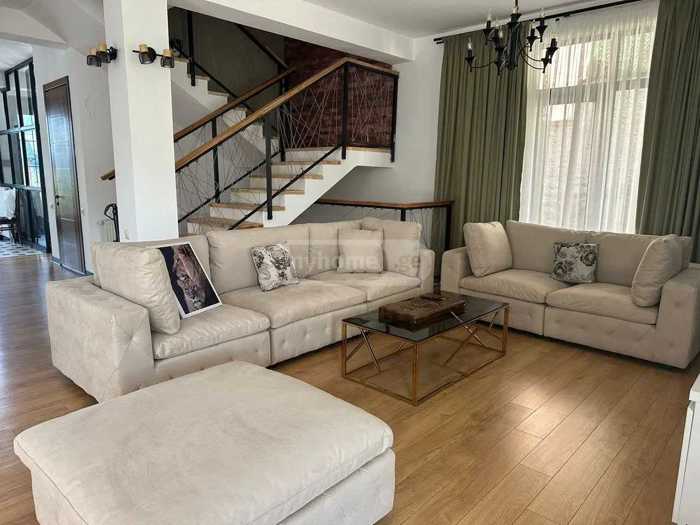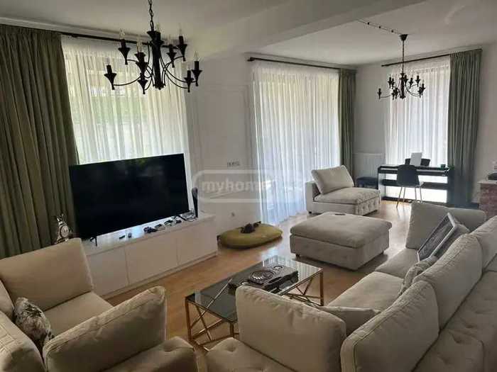 For rent is a 180 m² private house on Ekaterine Baghdavadze Street, in Vake, in an ecologically clean and safe environment, close to the city. The territory has 24/7 security, greenery and cleanliness services. The house has an isolated kitchen (+ pantry), a living room with a working fireplace, 4 bedrooms, and 3 bathrooms. Access to the terrace/courtyard is possible from all rooms. In the yard, there is a brick-paved grill oven and an artificial waterfall made in Japanese style. The yard is very green with many types of decorative plants.
