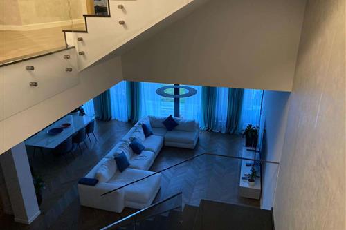 For rent in Saburtalo, a newly built private house of modern architecture, with stained glass, new, very beautiful, with a living area of 350 sq. m, it includes 4 bedrooms, it has two master bedrooms, a large living room, and a kitchen, the house has views of the rock, it is renovated with high-quality materials, equipped with expensive furniture and appliances, and is uninhabited. The price is 7500 USD per month.