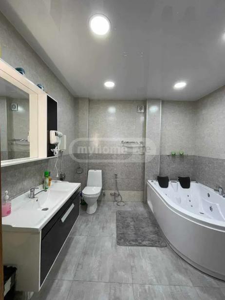 A private house for rent, 600 meters from the city court and Toyota center. There are a total of 6 rooms, including 5 bedrooms, a separate kitchen, and 2 bathrooms, one with a shower cabin and the other with a jacuzzi. The gate opens automatically and has an intercom. All amenities are available, including a washing machine, a large refrigerator, and a dishwasher.