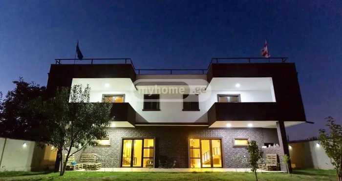 For rent is a newly built, officially registered and commissioned, modern design, multifunctional, well-equipped residential-recreational complex. Ideal for both a large family and a company that intends to arrange office rooms: 1. From two isolated residential houses 2. 10x5 swimming pool 3. Auxiliary building located in the yard The residential house includes two isolated apartments (arranged according to the mirror principle), each consisting of 4 bedrooms, a large living room (88 sq. m) on the first floor, a built-in Italian kitchen, with all kinds of household appliances, and a panoramic terrace on the third floor. The auxiliary building located in the yard is 120 sq. m, consisting of a wine cellar, a recreation room, fitness area, bathroom, and a room for service personnel. Ceiling height is 3.5 m. Yard area is 600 sq. m. Total area is 1000 sq. m. Total floors 3 Total rooms 15 Bedrooms 8 Total bathrooms 7 Total balconies 4 Terrace 212 sq. m.