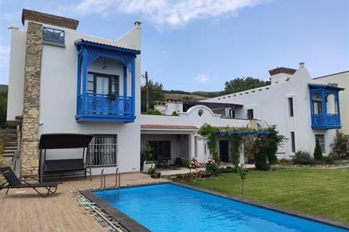 For rent, 8-room 440 sq.m. newly built house, 1500 sq.m. yard in Digomi 1, has central heating/cooling system, alarm system and 8 surveillance cameras, intercom, installed for security. The house is newly renovated and has furniture, as well as all necessary appliances and equipment for living. There are 5 bedrooms, 2 of which are the master. It has a nice veranda and yard. The price is 2800 US dollars.
