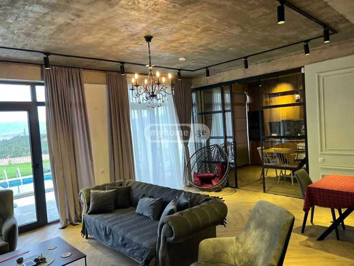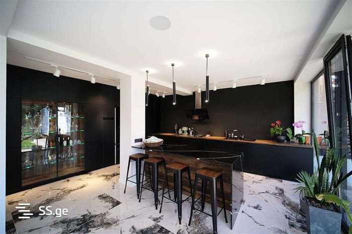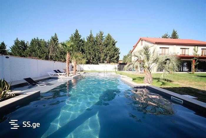 in rent minimum for 1 year. Newly built, modern style house Digomi-7. Built in 2019, renovation completed in 2021. Total area: 500 m2. Of this, the living area is: 350 m2. which includes the following planning: On the first floor: kitchen with dining area of stained glass type. Large living room and fireplace room. 2 bathrooms and 1 technical room. Hall with large built-in wardrobes. Open terrace 25 m2. On the second floor: a large living room. 4 bedrooms, including 1 master bedroom with walk-in closet. The remaining 3 bedrooms all have their own bathrooms. French balconies. The third floor is mansard type, there is a large office, a training room with its own bathroom. High-quality renovations have been made in the house, the colors are decided in a modern design. It is of stained glass type, stained glass windows of aluminum slide systems are installed. Video cameras on the full perimeter. Total yard area: up to 1200 square meters. Fenced with a block fence. with a pulverized gate. Greening made with its own automatic irrigation system. Decorated with rare trees and plants. Automatic lighting system around the perimeter of the yard. A beautiful pool has been made, dimensions: 17/5, depth 1.60 m. with its lights. There is also a barbecue area in the yard. Bar with bathroom and dressing room. 20m2 under the bar. Cellar with stained glass ceiling. Pool equipment maintenance room and garage for 1 car and heating maintenance room.