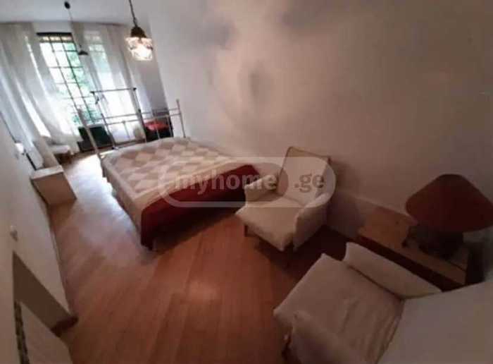 A well-equipped, cozy, bright house with a garden is for rent in Vake. It is furnished and equipped with necessary furniture and appliances. There is an operating fireplace, a sauna, and it has 2 entrances. It can be used as an apartment + an office. Rent is being requested with a 2-month advance payment.