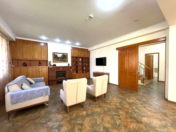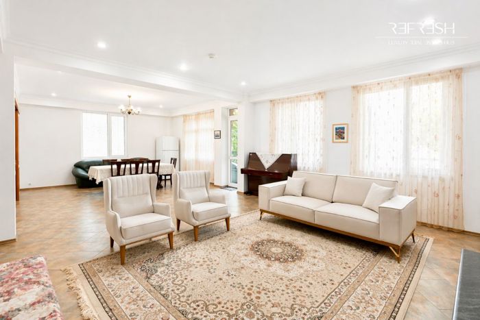 For rent in Vake on Shatberashvili Street, a 2-storey 300 m² private house with a 500 sq.m. yard. The house has 6 spacious bedrooms, each with its own dressing room, three full bathrooms and a large 50 m² living room with a cozy fireplace. A modern and fully equipped 16 m² kitchen, as well as a separate laundry room and 2 storage rooms. Comfort is guaranteed all year round thanks to the full underfloor heating system. Outside, a beautiful 500 m² private yard creates an ideal space for relaxation and entertainment, complemented by 2 private parking spaces. The bright interior with high ceilings and large windows enhances the feeling of space and light. The house is within walking distance of international schools, parks, cafes, shops and public transport.