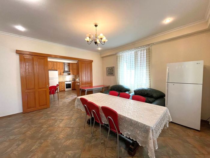 For rent in Vake, on Shatberashvili Street, the first floor of a three-story house, a 4-room apartment 150 sq.m., with a private yard of 250 sq.m. with a kitchen-dining room, a large living room, 1 bathroom. With 3 bedrooms (initial lighting) the house has a private entrance, is in perfect condition, newly renovated, equipped with all necessary appliances and furniture, hot water, internet, central heating. There is a parking space in the yard.