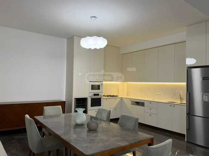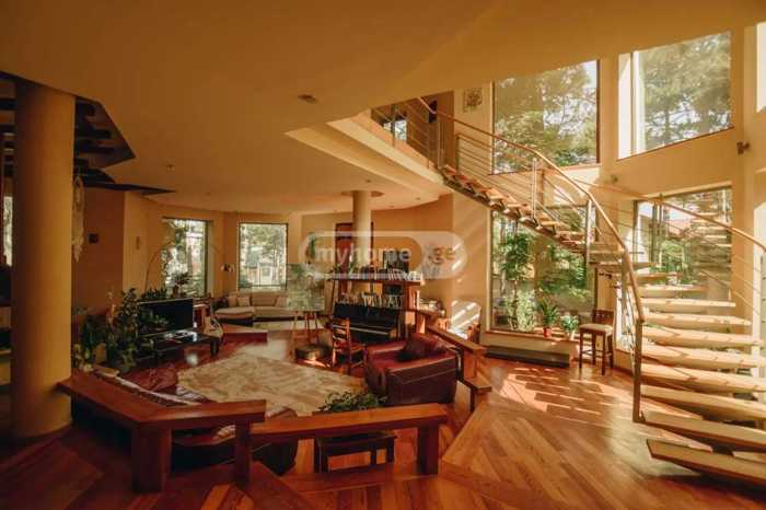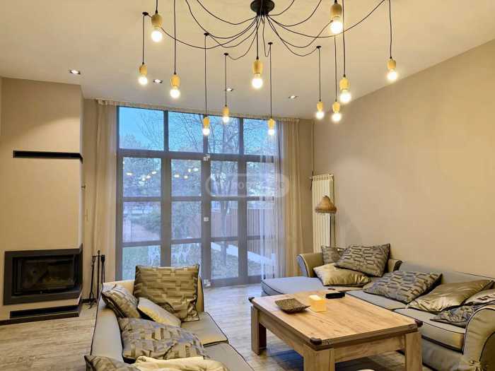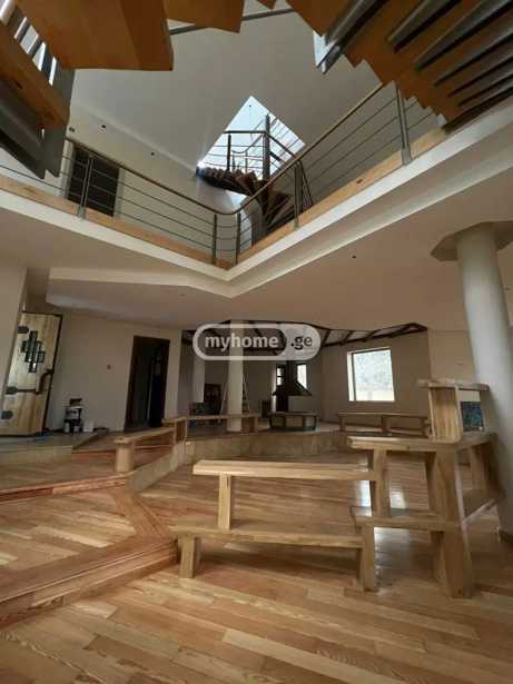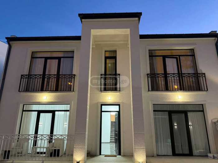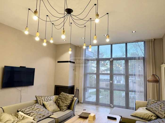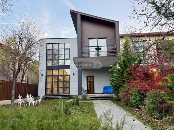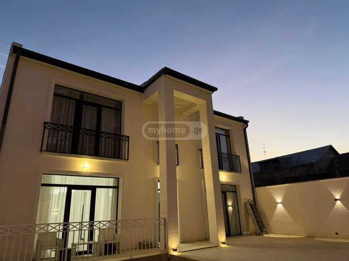 |For sale is a premium class two-storey private house in Tsqneti, at Erekele II Alley No. 11. The house is 280 sq/m, while the yard is 400 sq/m. The house has a living room and an integrated kitchen, three bedrooms with their own bathrooms, a terrace on both floors, and also a basement. In total, there are four bathrooms in the house. The house has a well-maintained yard, one side of which has a children's zone, and the other side has a relaxation area. All renovation work has been carried out with high-quality materials, and the apartment design has been created by a group of designers.