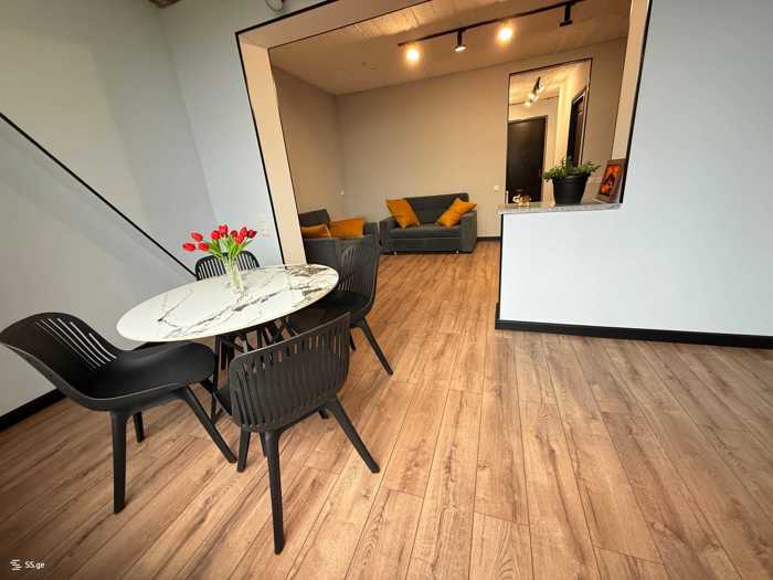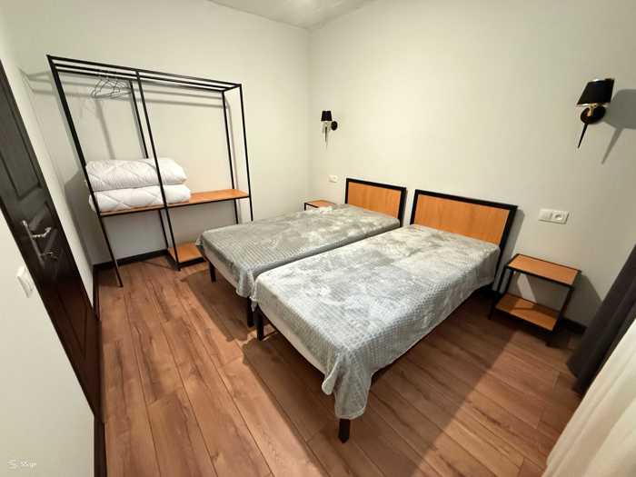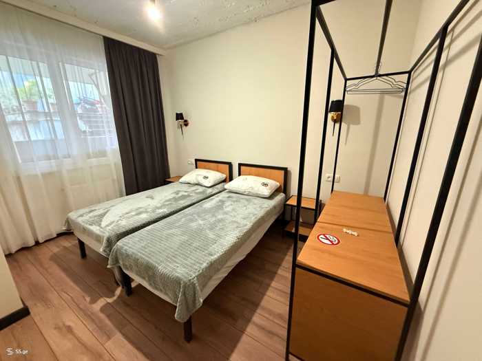 An 8-room active hotel in Tbilisi. (Each room has its own bathroom) The hotel is fully equipped with all necessary inventory, furniture, and appliances. It has its own parking space. A central heating, exhaust, and air conditioning system are installed, along with natural gas, internet, and cable television. All communications are in order. There is a large isolated kitchen, a spacious reception area, and the hotel has a beautiful yard and balconies with stunning views of the city. Located 2 km from Freedom Square, in a very convenient and quiet area.