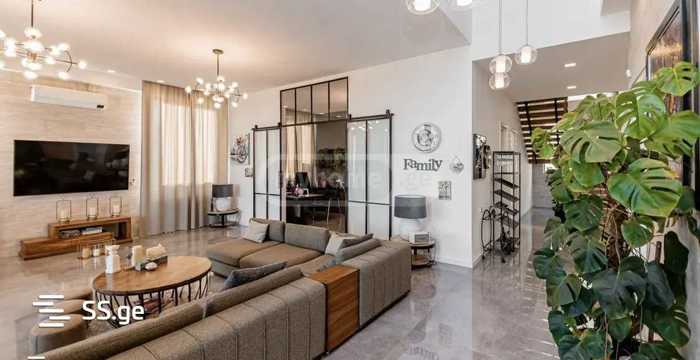 Private house in Okrozhani. Furnished and equipped with appliances. Alarm system, cameras, yard lighting, and irrigation system are installed. The house has internal and external stairs, terraces with a view of Tbilisi. 3 bedrooms, 3 bathrooms, 2 fireplaces, 2 car parking spaces (garage), heated pool + shower.