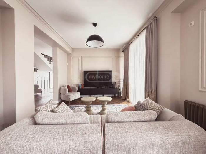 For rent: a 330 m² newly built private house on Nino Street of the Apostles. This is an ideal living place for those looking for comfort, tranquility, and modern standards. The house features sophisticated, modern design and high-quality renovations that fully meet the highest requirements. The house has three floors and includes a spacious living room with a fireplace, an isolated fully equipped kitchen with a dining area, five bright and cozy bedrooms, each with its own bathroom and balcony with beautiful views of the city and nature. There is also an additional office or guest room and several bathrooms. The interior features natural materials, wooden floors, and modern appliances. The house is equipped with central heating and air conditioning systems, ensuring a comfortable temperature at any time of the year. The yard is well-maintained with green space, where relaxation and unwinding is possible. A parking space for several cars is also provided. Nino Street of the Apostles is known for its tranquility and prestige, providing a peaceful and safe environment for residents. Schools, kindergartens, supermarkets, and recreational areas are nearby, making this location especially attractive for families. This property represents a rare opportunity to live close to the city center while enjoying all the advantages of a private house. If interested, please contact me at the number indicated in the advertisement.